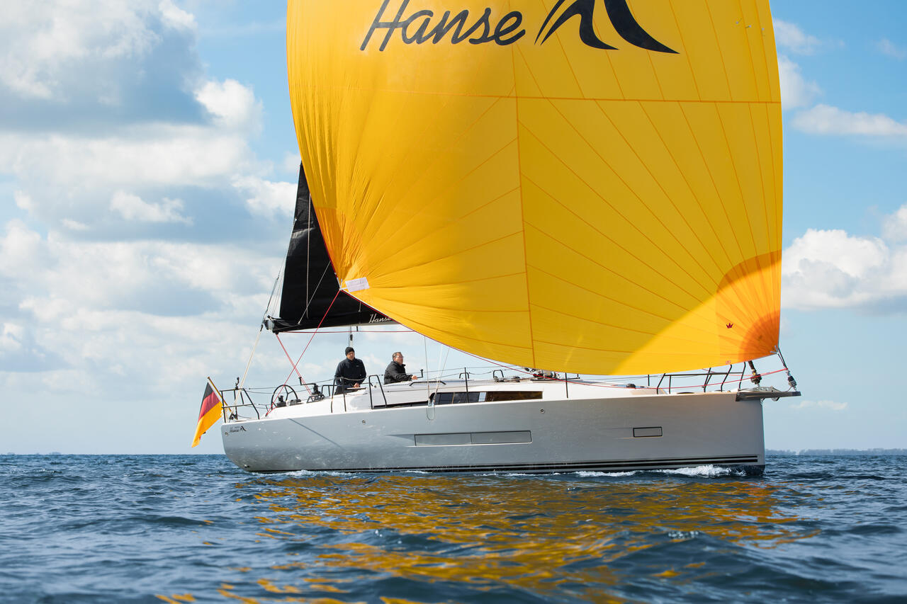 Der Mast ist 85 cm höher als bei der Hanse 360, was +8 % Großsegel-, +12 % Vorsegel- und +14 % Gennakerfläche ermöglicht. Der Kiel hat einen um 11 cm größeren Tiefgang. Die Werft verspricht bis zu 10 % mehr Geschwindigkeit auf allen Windkursen (Vergleich Hanse 360).