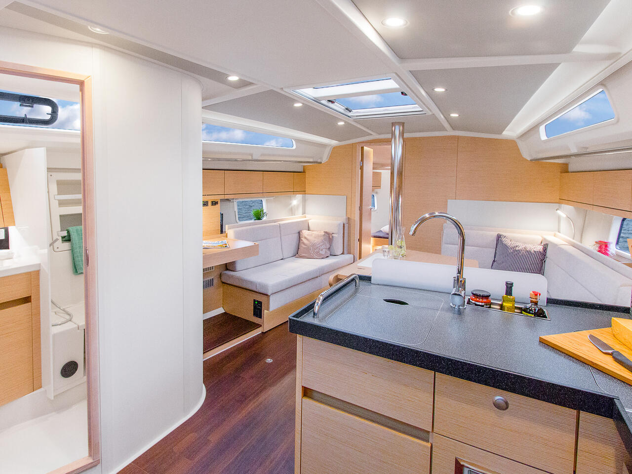 Unter Deck erwartet einen ein lichtdurchflutetes und stilvolles Ambiente. Große Fensterflächen – darunter das charakteristische Salondachfenster mit festen und optionalen, öffnbaren Elementen – schaffen eine außergewöhnliche Wohlfühlatmosphäre.