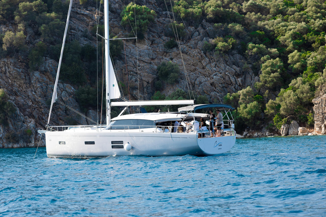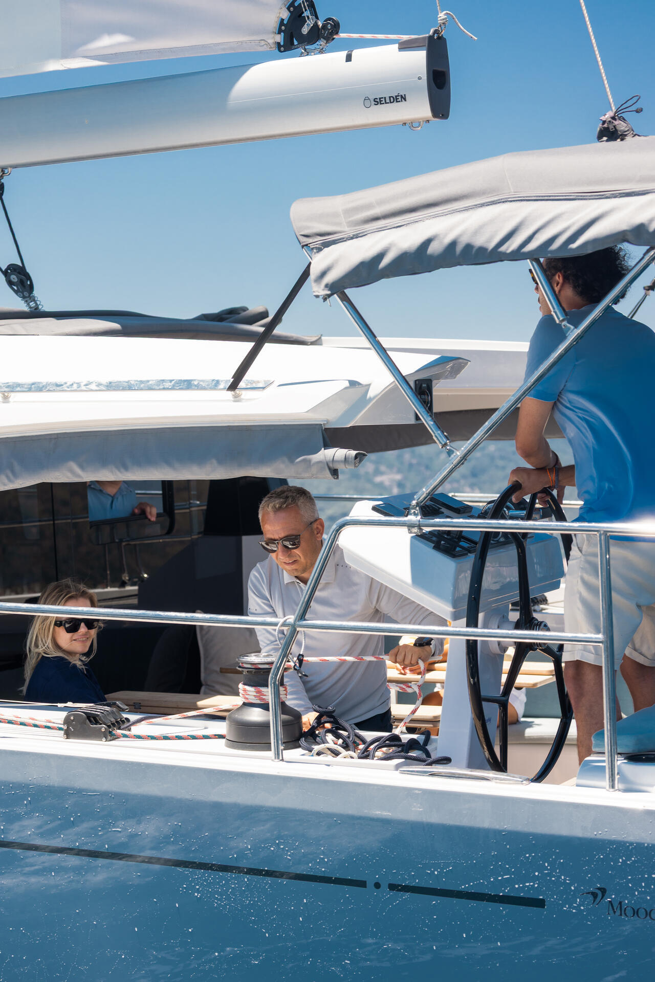 Das Moody Walkaround Deck bietet Sicherheit auf See mit einem hohen Schanzkleid und fester Edelstahlreling. Eine extra hohe Fußreling ist ebenfalls vorhanden. Die Yacht ist mit einer Doppelsteueranlage und einer erhöhten Steuerposition ausgestattet. Die Standardspezifikation umfasst ein Selbstwendefock-System und ein German-Mainsheet-System.